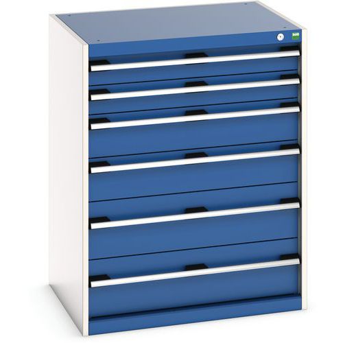 Dielenská zásuvková skriňa Bott Cubio, 100 x 80 x 65 cm, 6 zásuviek, šedá-modrá