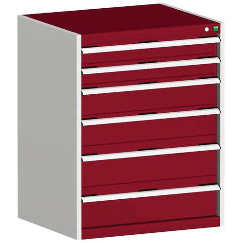 Dielenská zásuvková skriňa Bott Cubio, 100 x 80 x 75 cm, 6 zásuviek, šedá-červená