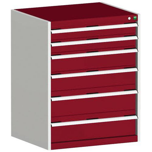 Dielenská zásuvková skriňa Bott Cubio, 100 x 80 x 65 cm, 6 zásuviek, šedá-červená