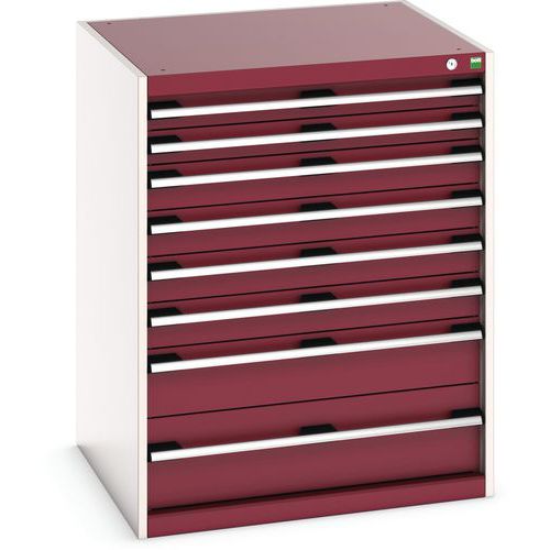 Dielenská zásuvková skriňa Bott Cubio, 100 x 80 x 75 cm, 8 zásuviek, šedá-červená