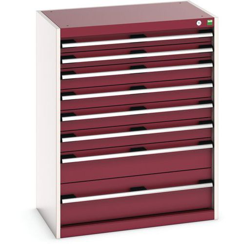 Dielenská zásuvková skriňa Bott Cubio, 100 x 80 x 52,5 cm, 8 zásuviek, šedá-červená