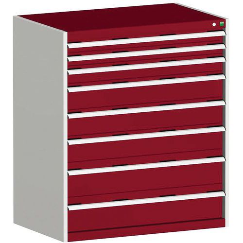 Dielenská zásuvková skriňa Bott Cubio, 120 x 105 x 65 cm, 8 zásuviek, šedá-červená