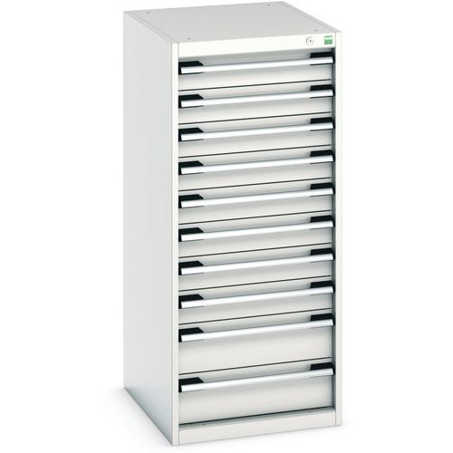 - Zásuvkové skrine Bott Cubio so zásuvkami s nosnosťou 75 kg a 100% výsuvy na valčekových ložiskách.