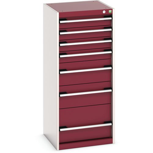 Dielenská zásuvková skriňa Bott Cubio, 120 x 52,5 x 52,5 cm, 7 zásuviek, šedá-červená