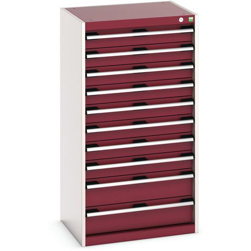Dielenská zásuvková skriňa Bott Cubio, 120 x 65 x 52,5 cm, 10 zásuviek, šedá-červená
