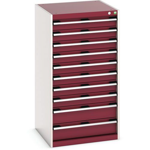 Dielenská zásuvková skriňa Bott Cubio, 120 x 65 x 65 cm, 10 zásuviek, šedá-červená