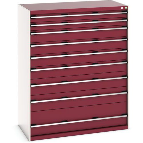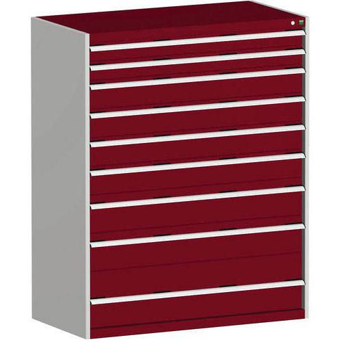 Dielenská zásuvková skriňa Bott Cubio, 160 x 130 x 75 cm, 9 zásuviek, šedá-červená