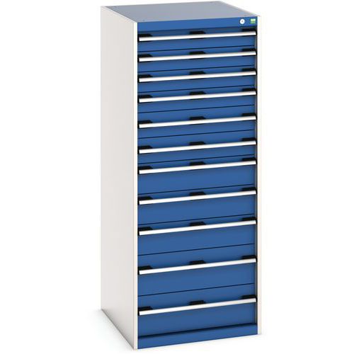 - Zásuvkové skrine Bott Cubio so zásuvkami s nosnosťou 75 kg a 100% výsuvy na valčekových ložiskách.