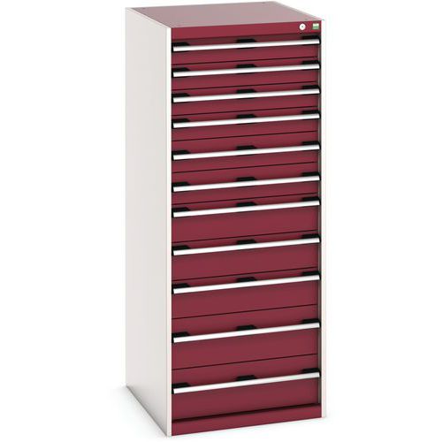 Dielenská zásuvková skriňa Bott Cubio, 160 x 65 x 75 cm, 11 zásuviek, šedá-červená