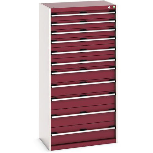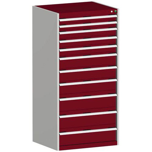 Dielenská zásuvková skriňa Bott Cubio, 160 x 80 x 52,5 cm, 11 zásuviek, šedá-červená
