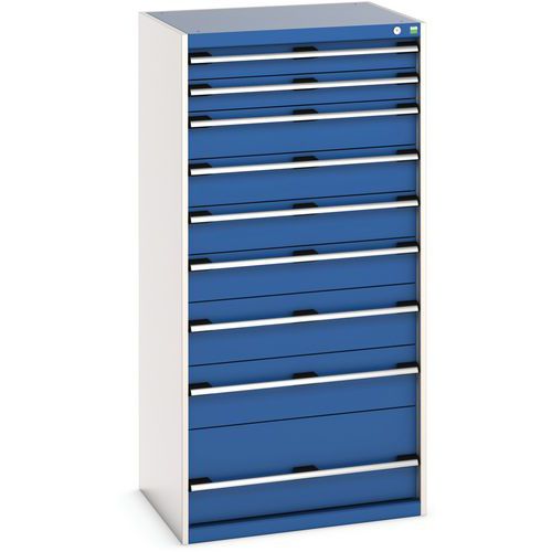 Dielenská zásuvková skriňa Bott Cubio, 160 x 80 x 65 cm, 9 zásuviek, šedá-modrá
