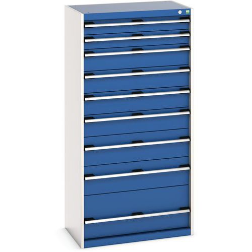 Dielenská zásuvková skriňa Bott Cubio, 160 x 80 x 52,5 cm, 9 zásuviek, šedá-modrá