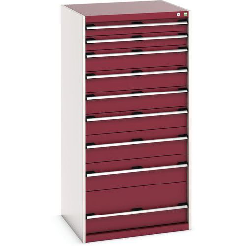 Dielenská zásuvková skriňa Bott Cubio, 160 x 80 x 75 cm, 9 zásuviek, šedá-červená