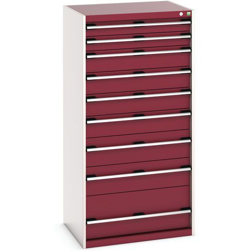 Dielenská zásuvková skriňa Bott Cubio, 160 x 80 x 65 cm, 9 zásuviek, šedá-červená