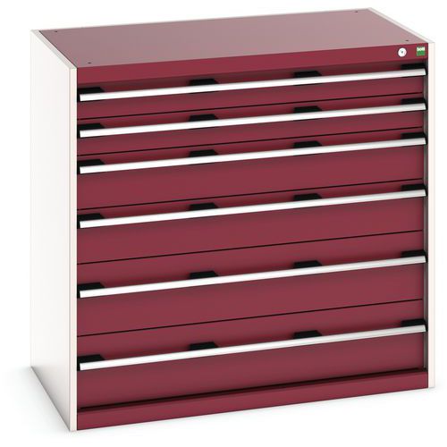 Dielenská zásuvková skriňa Bott Cubio 200, 100 x 105 x 65 cm, 6 zásuviek, šedá-červená