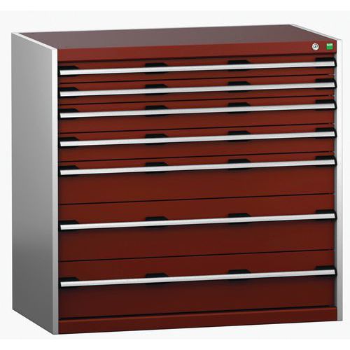 Dielenská zásuvková skriňa Bott Cubio 200, 100 x 105 x 65 cm, 7 zásuviek, šedá-červená