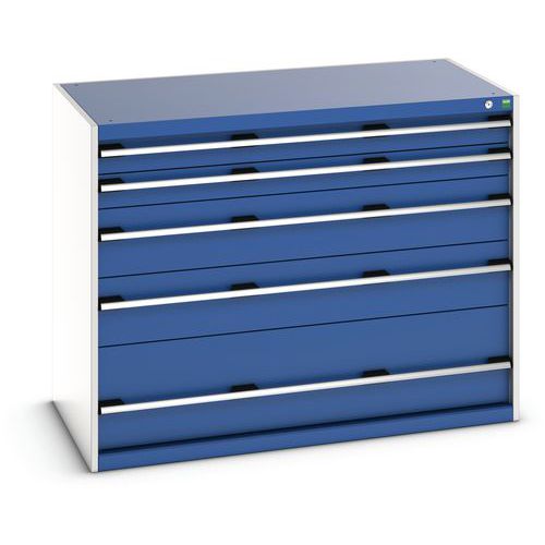 Dielenská zásuvková skriňa Bott Cubio 200, 100 x 130 x 75 cm, 5 zásuviek, šedá-modrá