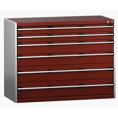 Dielenská zásuvková skriňa Bott Cubio 200, 100 x 130 x 65 cm, 6 zásuviek, šedá-červená