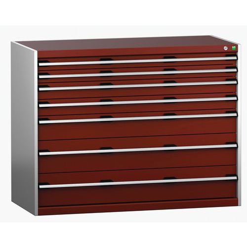 Dielenská zásuvková skriňa Bott Cubio 200, 100 x 130 x 65 cm, 7 zásuviek, šedá-červená