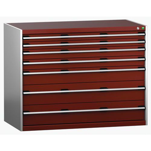 Dielenská zásuvková skriňa Bott Cubio 200, 100 x 130 x 75 cm, 7 zásuviek, šedá-červená