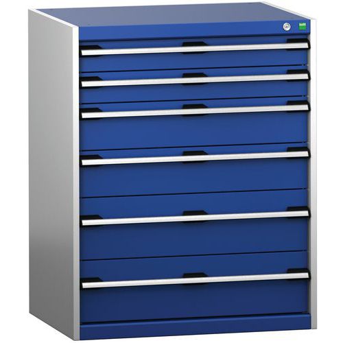Dielenská zásuvková skriňa Bott Cubio 200, 100 x 80 x 65 cm, 6 zásuviek, šedá-modrá