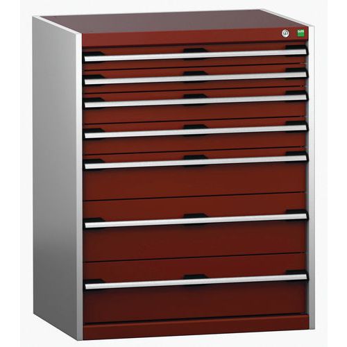 Dielenská zásuvková skriňa Bott Cubio 200, 100 x 80 x 65 cm, 7 zásuviek, šedá-červená