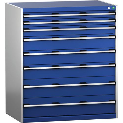 Dielenská zásuvková skriňa Bott Cubio 200, 120 x 105 x 75 cm, 8 zásuviek, šedá-modrá