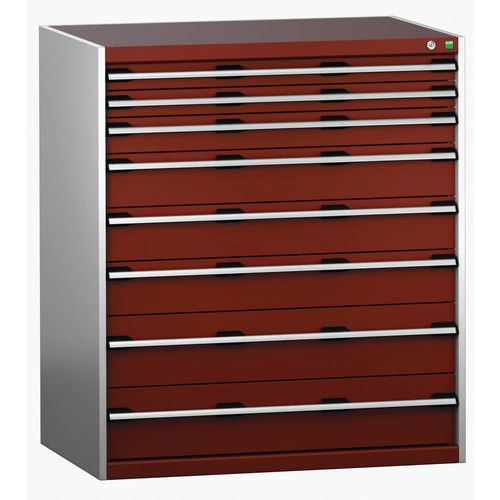 Dielenská zásuvková skriňa Bott Cubio 200, 120 x 105 x 75 cm, 8 zásuviek, šedá-červená