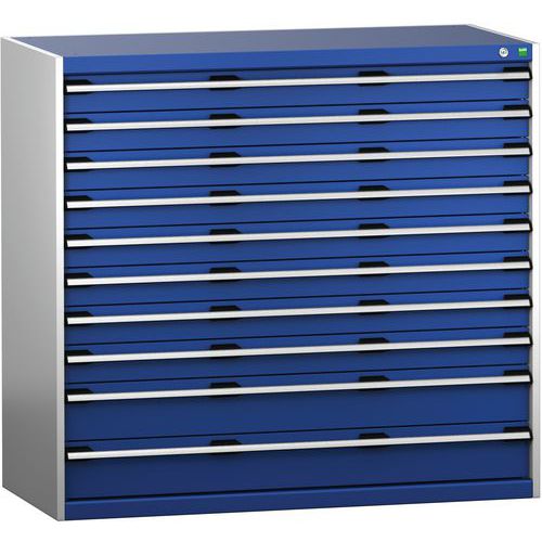 Dielenská zásuvková skriňa Bott Cubio 200, 120 x 130 x 65 cm, 10 zásuviek, šedá-modrá