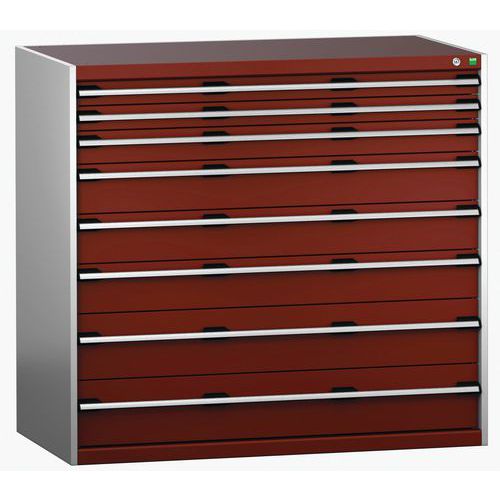 Dielenská zásuvková skriňa Bott Cubio 200, 120 x 130 x 75 cm, 8 zásuviek, šedá-červená