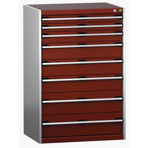 Dielenská zásuvková skriňa Bott Cubio 200, 120 x 80 x 65 cm, 8 zásuviek, šedá-červená