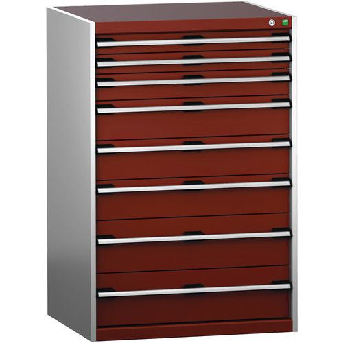 Dielenská zásuvková skriňa Bott Cubio 200, 120 x 80 x 75 cm, 8 zásuviek, šedá-červená