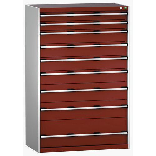 Dielenská zásuvková skriňa Bott Cubio 200, 160 x 105 x 65 cm, 9 zásuviek, šedá-červená