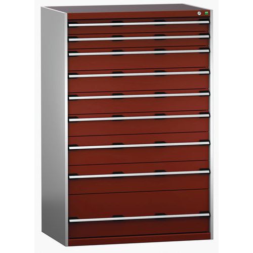 Dielenská zásuvková skriňa Bott Cubio 200, 160 x 105 x 75 cm, 9 zásuviek, šedá-červená