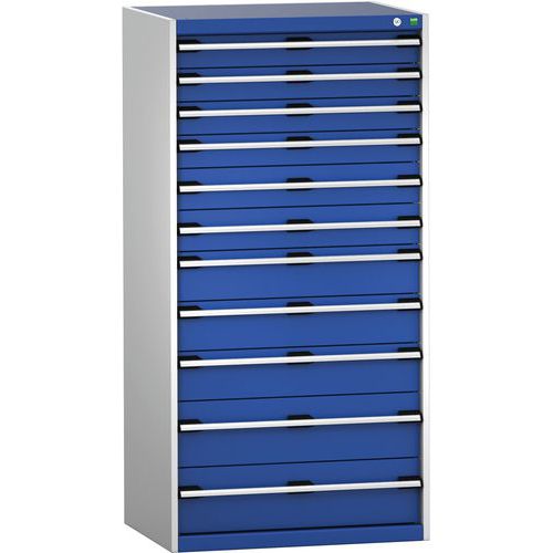 Dielenská zásuvková skriňa Bott Cubio 200, 160 x 80 x 65 cm, 11 zásuviek, šedá-modrá