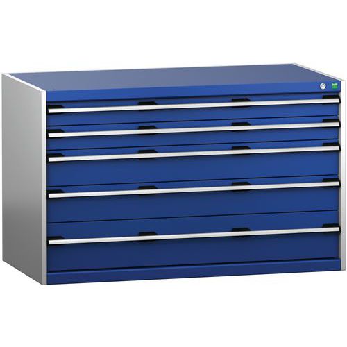 Dielenská zásuvková skriňa Bott Cubio 200, 80 x 130 x 75 cm, 5 zásuviek, šedá-modrá