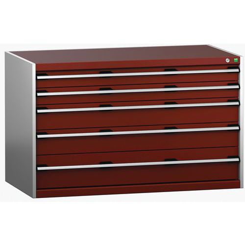 Dielenská zásuvková skriňa Bott Cubio 200, 80 x 130 x 75 cm, 5 zásuviek, šedá-červená