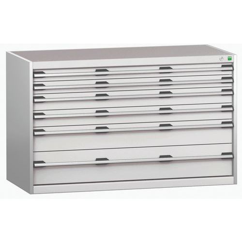 - Zásuvkové skrine Bott Cubio so zásuvkami s nosnosťou 200 kg a 100% výsuvy na valčekových ložiskách.