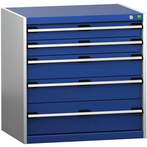 Dielenská zásuvková skriňa Bott Cubio 200, 80 x 80 x 65 cm, 5 zásuviek, šedá-modrá