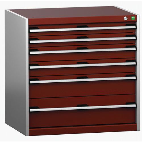 Dielenská zásuvková skriňa Bott Cubio 200, 80 x 80 x 65 cm, 6 zásuviek, šedá-červená