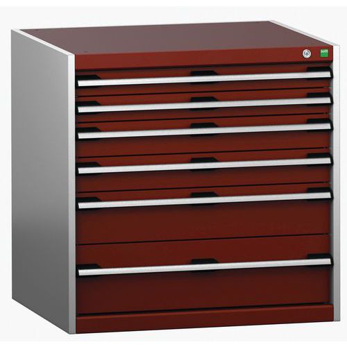 Dielenská zásuvková skriňa Bott Cubio 200, 80 x 80 x 75 cm, 6 zásuviek, šedá-červená