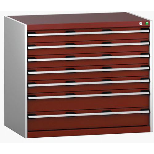 Dielenská zásuvková skriňa Bott Cubio 200, 90 x 105 x 75 cm, 7 zásuviek, šedá-červená
