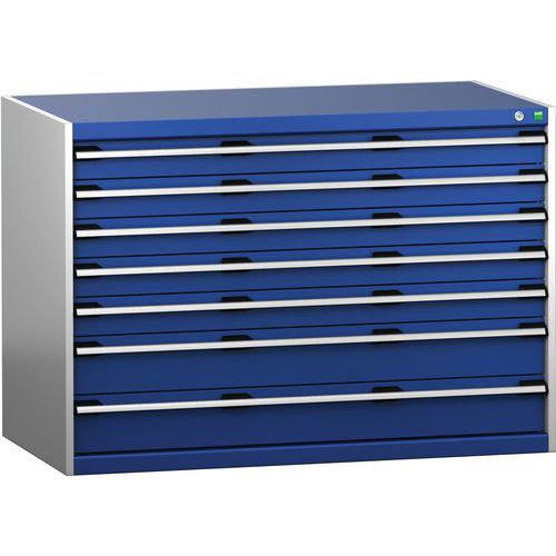 Dielenská zásuvková skriňa Bott Cubio 200, 90 x 130 x 75 cm, 7 zásuviek, šedá-modrá