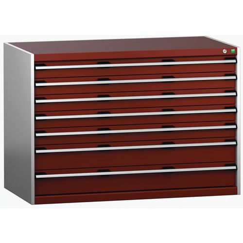 Dielenská zásuvková skriňa Bott Cubio 200, 90 x 130 x 75 cm, 7 zásuviek, šedá-červená