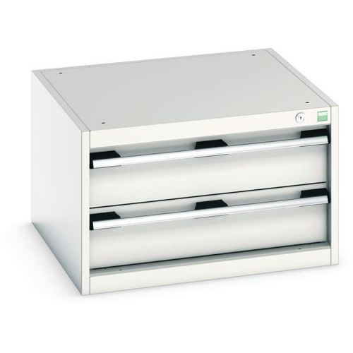 - Zásuvkové skrine Bott Cubio so zásuvkami s nosnosťou 75 kg a 100% výsuvy na valčekových ložiskách.