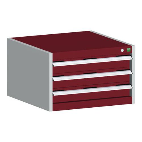 Dielenská zásuvková skriňa Bott Cubio, 40 x 65 x 75 cm, 3 zásuvky, šedá-červená