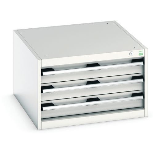 - Zásuvkové skrine Bott Cubio so zásuvkami s nosnosťou 75 kg a 100% výsuvy na valčekových ložiskách.