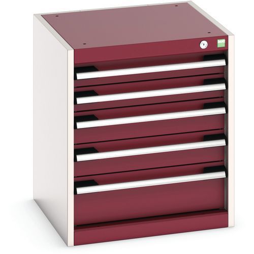 Dielenská zásuvková skriňa Bott Cubio, 60 x 52,5 x 52,5 cm, 5 zásuviek, šedá-červená