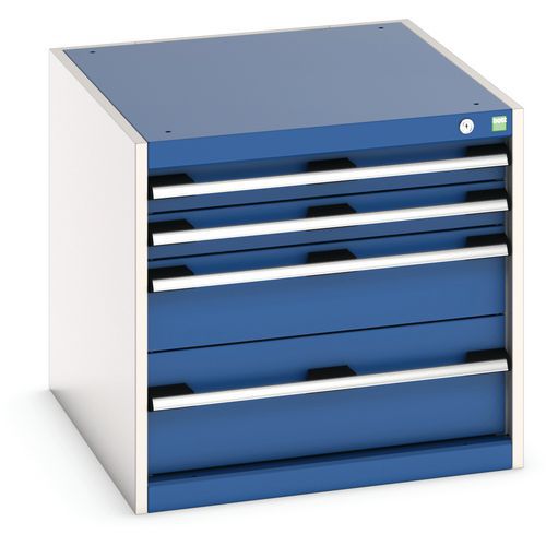 - Zásuvkové skrine Bott Cubio so zásuvkami s nosnosťou 75 kg a 100% výsuvy na valčekových ložiskách.