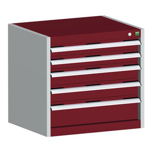 Dielenská zásuvková skriňa Bott Cubio, 60 x 65 x 75 cm, 5 zásuviek, šedá-červená